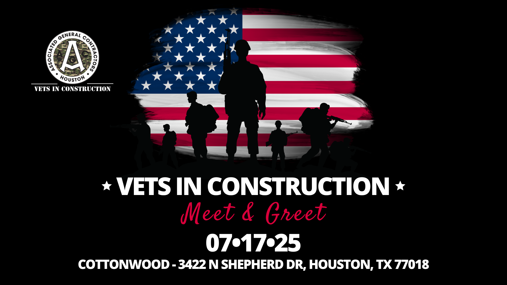 Time is Running out to register for AGC Houston's Vets in Construction Affinity Group Meet & Greet on July 17th!