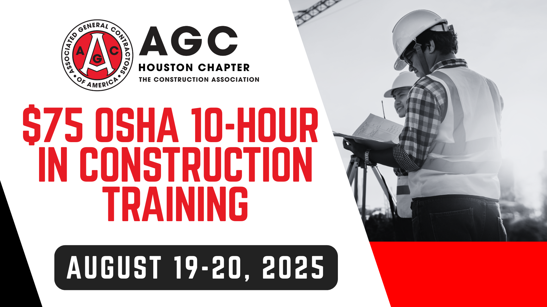 Time is running out to register for AGC Houston’s $75 OSHA 10-Hour in Construction Training flash sale! This two-day, in-person course is available for both members and non-members at the same price of $75. Presented by AGC Houston’s authorized instructors, it is designed to train employees in the basic essentials of occupational safety and health in construction.
