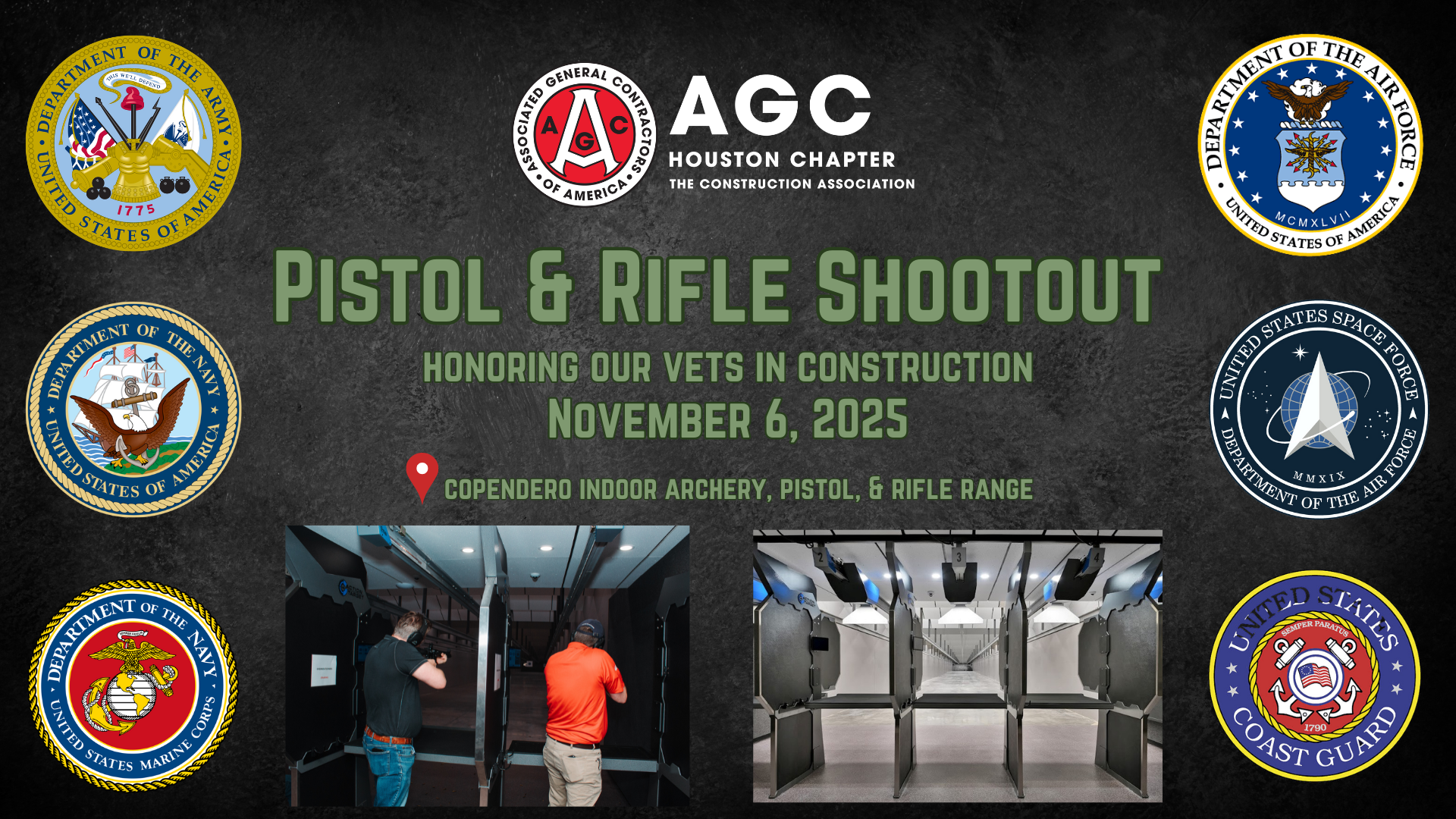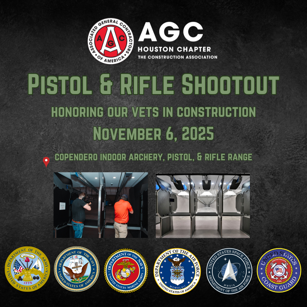 Join us for an exciting day of competition and camaraderie as we honor our Vets in Construction at this year’s AGC Houston Pistol & Rifle Shootout. Whether you're a competitor or just want to enjoy the event as a spectator, there's something for everyone!