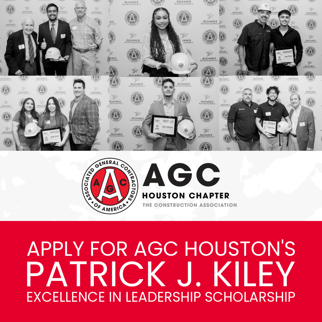AGC Houston will be awarding the Patrick J. Kiley Excellence in Leadership Scholarship in the spring of 2026 to college-bound and university students who are majoring in a construction-related discipline.