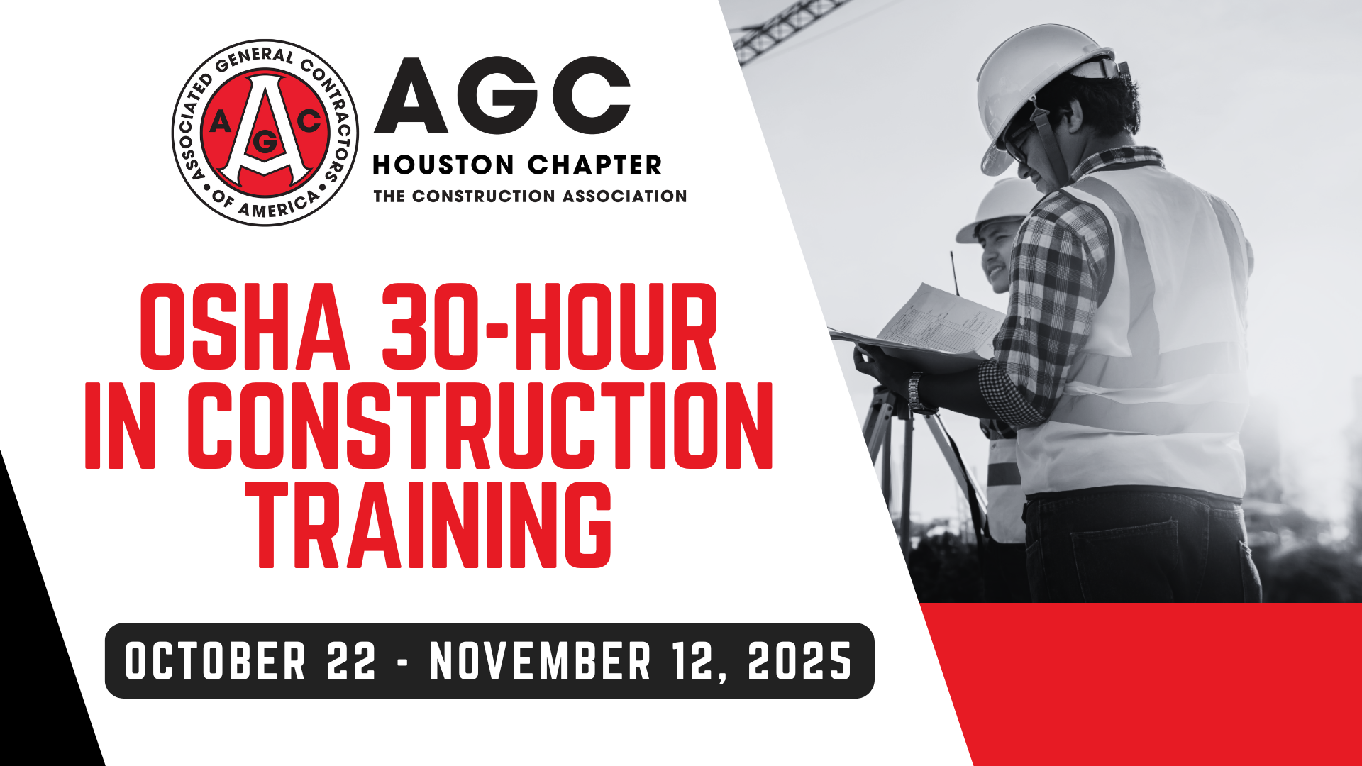 This OSHA 30-Hour in Construction course is a four-week, in-person class that meets every Wednesday. It is presented by AGC Houston's authorized instructor(s) and is designed for project management, site supervision, and field employees in the construction industry.