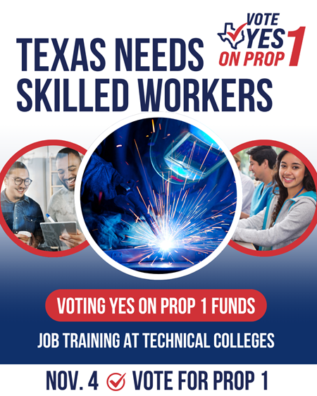 Proposition 1 (Prop 1) on your Nov. 4th ballot provides Texas State Technical College (TSTC) with funds to expand job-training programs and help meet the needs of today’s workforce.
