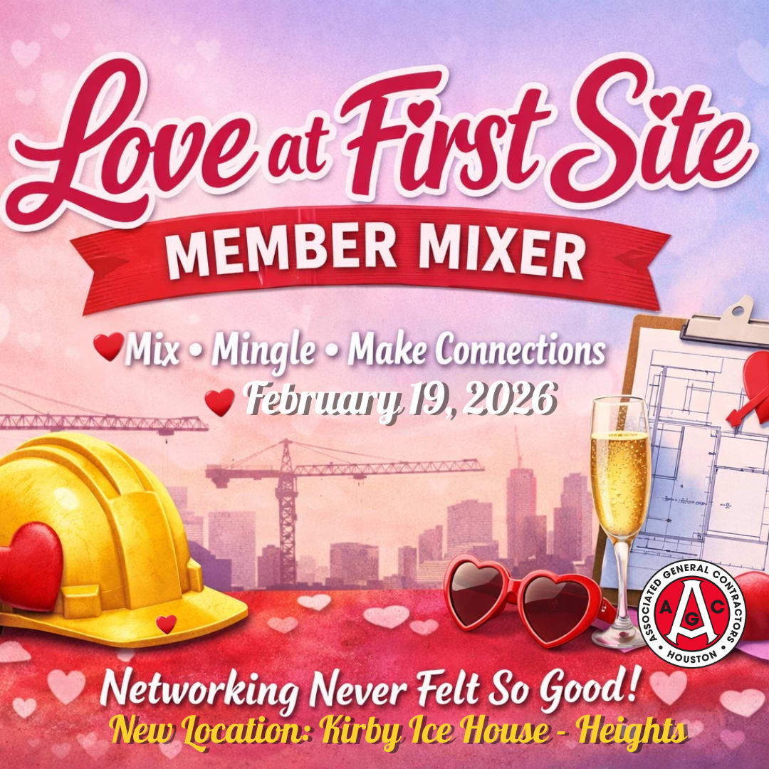 Kick off 2026 with us and your AGC Houston crew at our Love at First Site Member Mixer - a networking event you won’t want to miss!