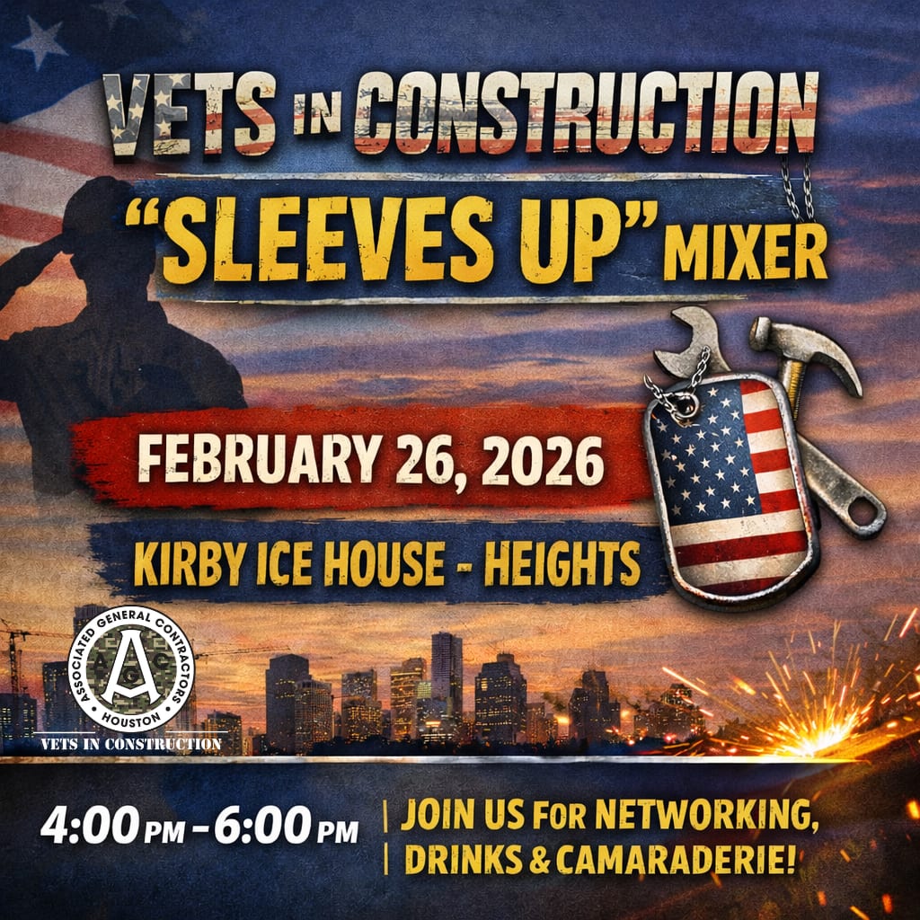 Vets in Construction: Sleeves Up Mixer📅 Thursday, February 26, 2026🕓 4:00 PM – 6:00 PM📍 Kirby Ice House – Heights