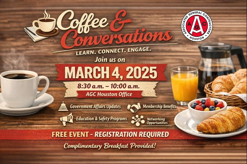 Start your morning with Coffee & Conversations on March 4th! This free event is open to current, new, and prospective AGC Houston members. Enjoy a complimentary breakfast while learning how to make the most of your AGC Houston membership.