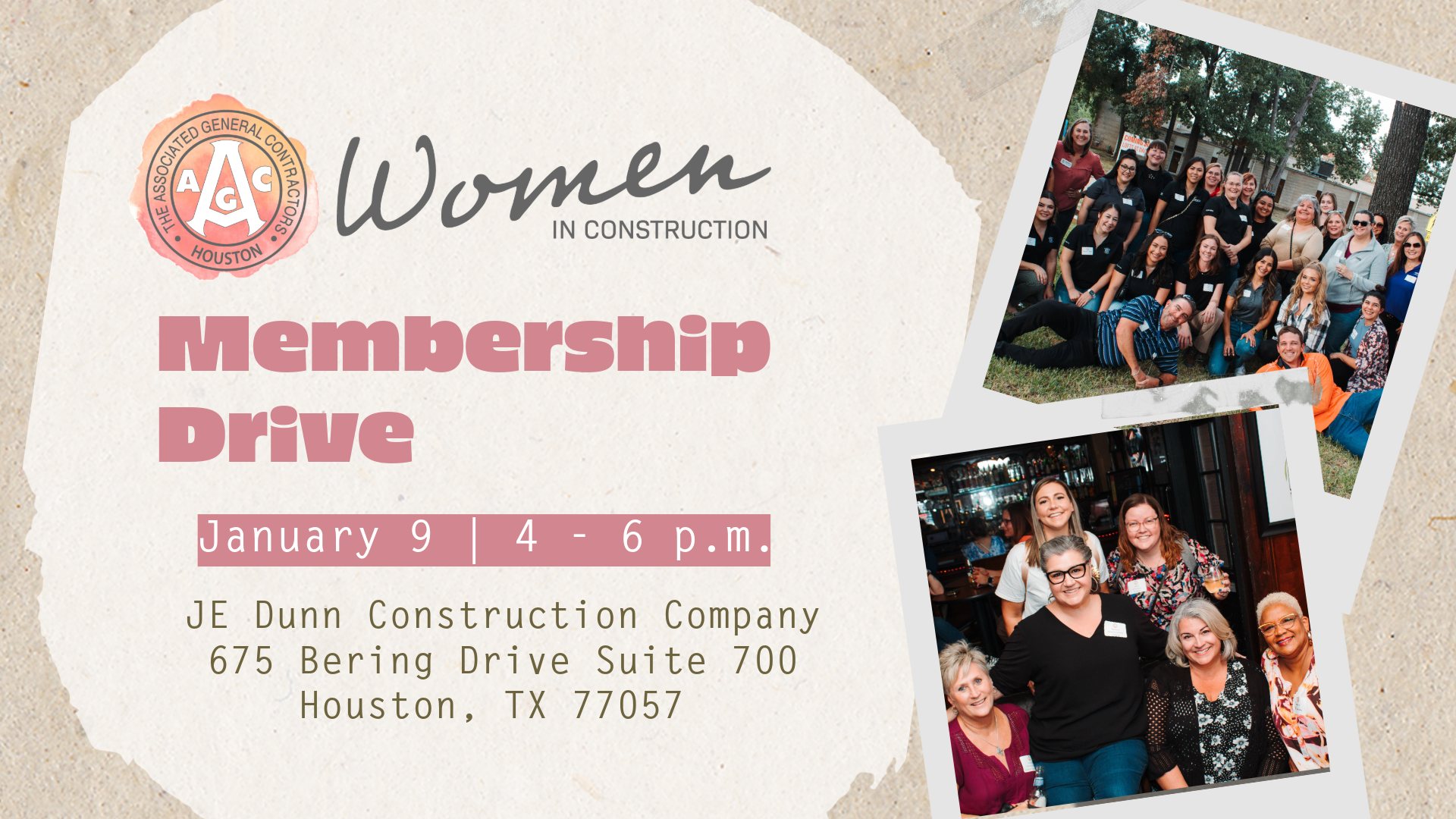 Calling all women in construction! Start the new year off right by joining us on January 9th for our annual Women in Construction Membership Drive & Happy Hour. You don't want to miss this exclusive opportunity to connect with others in the industry and learn about all that our Women in Construction Committee has to offer. Huge thanks to our friends at JE Dunn for hosting us! We hope to see you there!