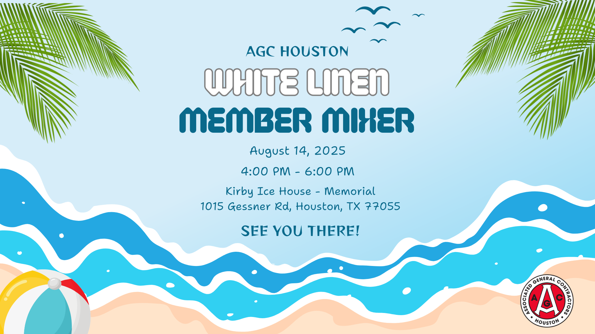 Get ready to wrap up summer in style with your AGC Houston crew at our White Linen Member Mixer—a networking event you won’t want to miss!