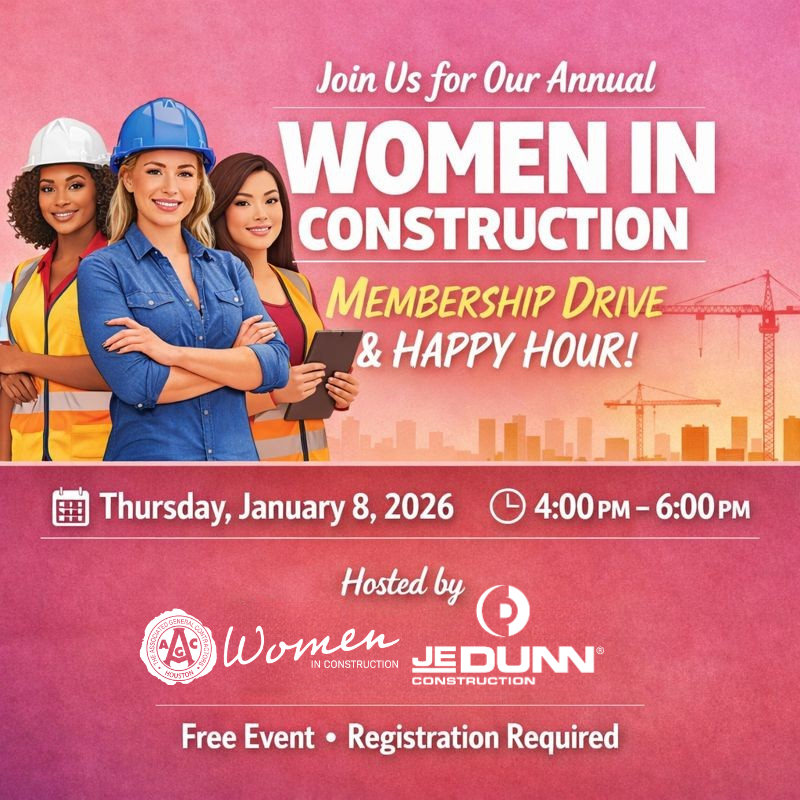 Calling all women in construction! Kick off the new year by joining us on January 8th for our annual Women in Construction Membership Drive & Happy Hour. This is a great opportunity to connect with other women in the industry, expand your network, and learn more about everything the Women in Construction Committee has planned for the year ahead.